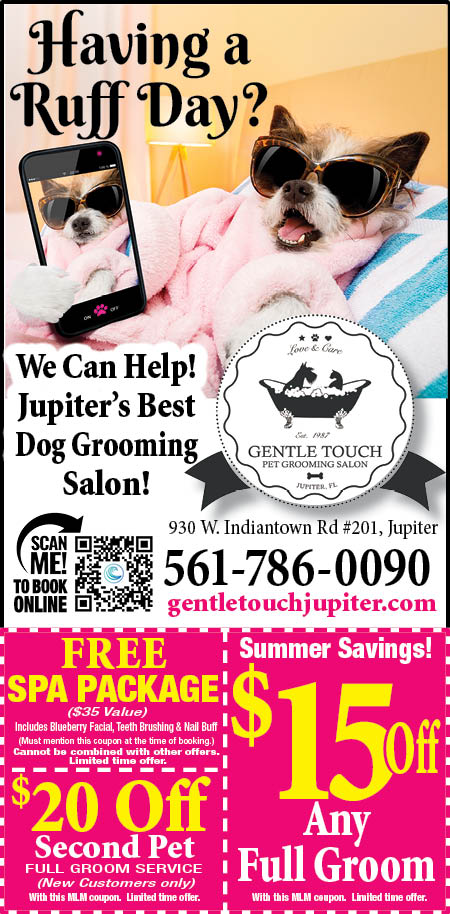 Gentle Touch Pet Grooming first opened its doors in October 1985 with a goal of delivering friendly service and a positive experience to all pets while receiving a quality, professional grooming. Through the years Gentle Touch has been successful at doing just that. Gentle Touch is conveniently located in Jupiter on Indiantown Road between I-95 and Military Trail. The salon is designed with all state of the art equipment in a clean, well maintained, and safe environment.