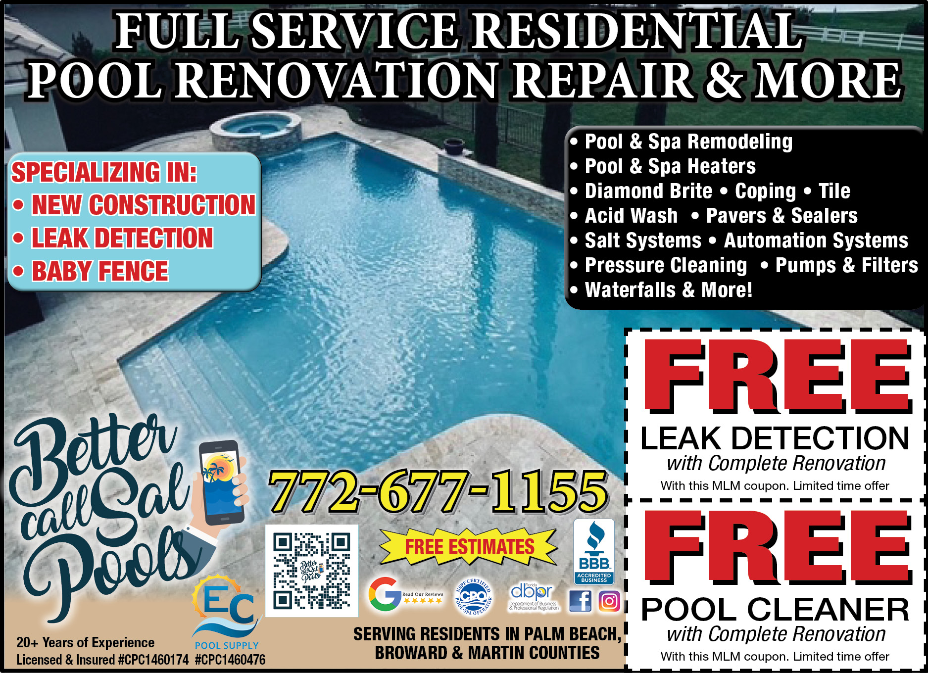 Based in South Florida, Better Call Sal Pools specializes in Expert Residential Pool and Spa Renovation, Repair & Maintenance.