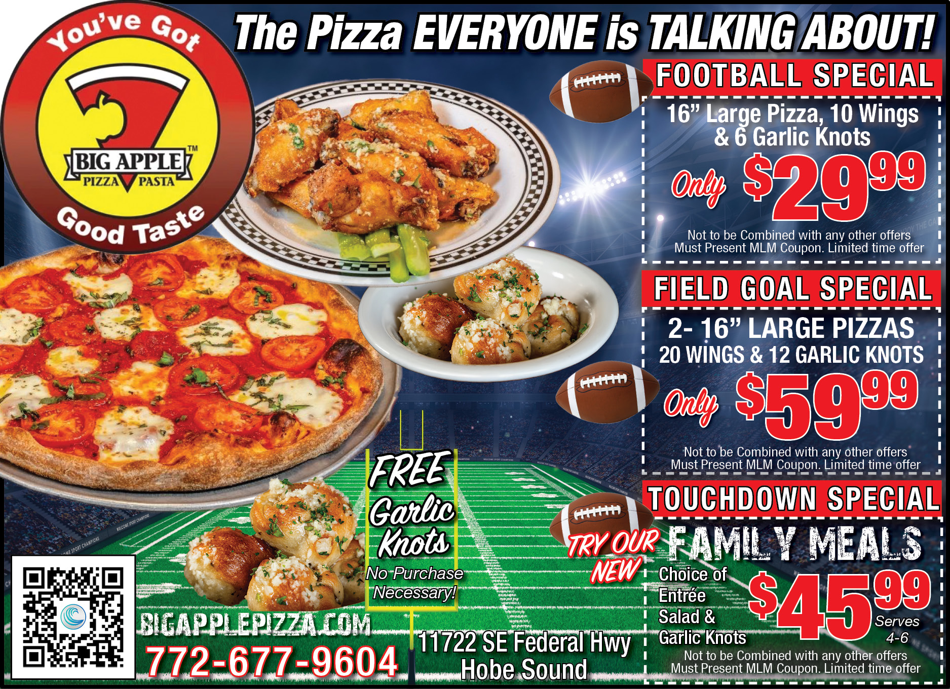 Many years ago, the Lino family migrated to the neighborhood from Brooklyn, New York with the dreams of opening a New York style pizzeria. They brought with them a sense of pride and tradition along with authentic recipes developed by Filomena Lino herself, the family matriarch. Over 45 years later, with much support from our communities, Big Apple Pizza has become known for our commitment to quality & fresh ingredients with great customer service. From our family to yours, enjoy & hope to see you again soon!
