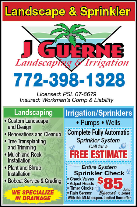 J. Guerne Landscaping & Irrigation was founded and incorporated in Port St. Lucie, FL. Amassed with 30+ years of experience, the family owned and operated company strives to offer quality outdoor services. We are devoted to beatifying the Treasure Coast while operating a fully licensed and insured company. Our team has the experience and knowledge of all phases of a customer’s landscaping needs; start to finish. We offer free consultations along with photos of previous work to help visualize each individual’s needs, with an array of options to turn them into reality.