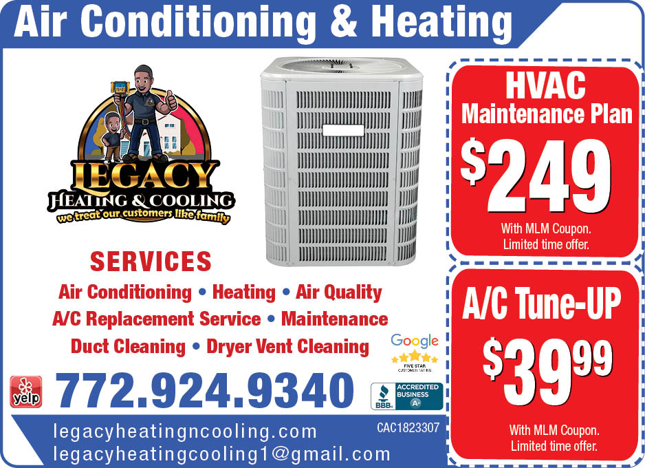 Don’t settle for anything less than the best when it comes to your property’s comfort. Legacy Heating & Cooling has years of experience providing a wide variety of HVAC services for homeowners and business owners in Palm City, Port St. Lucie, FL and surrounding areas. From HVAC installations to maintenance work, our local HVAC company can do it all.