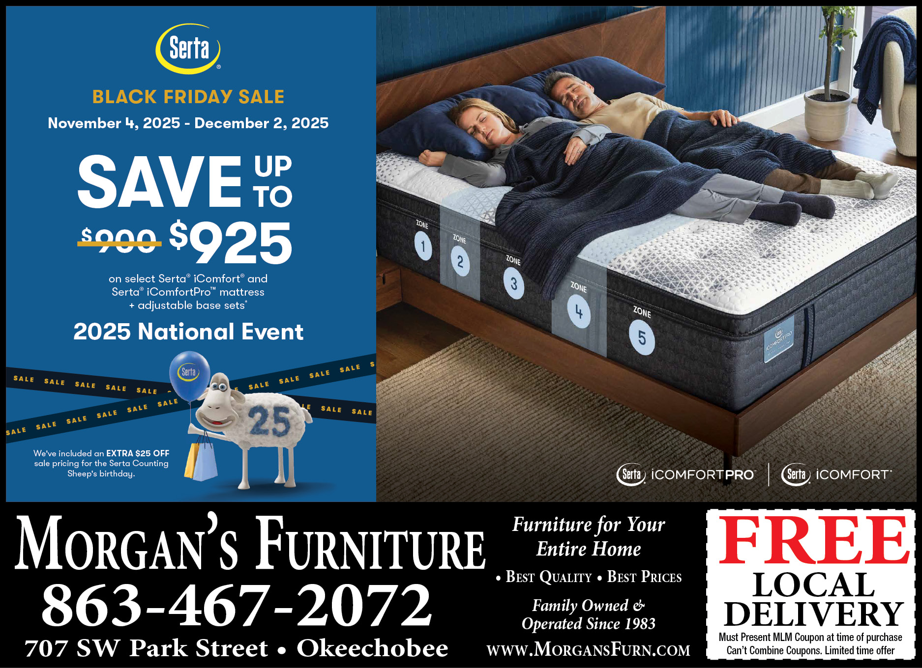 We look forward to seeing you at Morgan’s Furniture, serving Okeechobee, VERO BEACH, TREASURE COAST and WEST PALM in Florida since 1983.