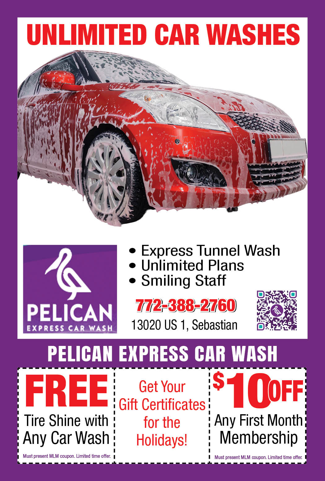 Purple Pelican is an Express Tunnel Wash with more to offer than just our tunnel. Located in the amazing town of Sebastian, FL. Our main goal is to provide great customer service and a quality wash. With the help of our exceptional and smiling staff, we make sure our customers are satisfied with a shining, like-new car.