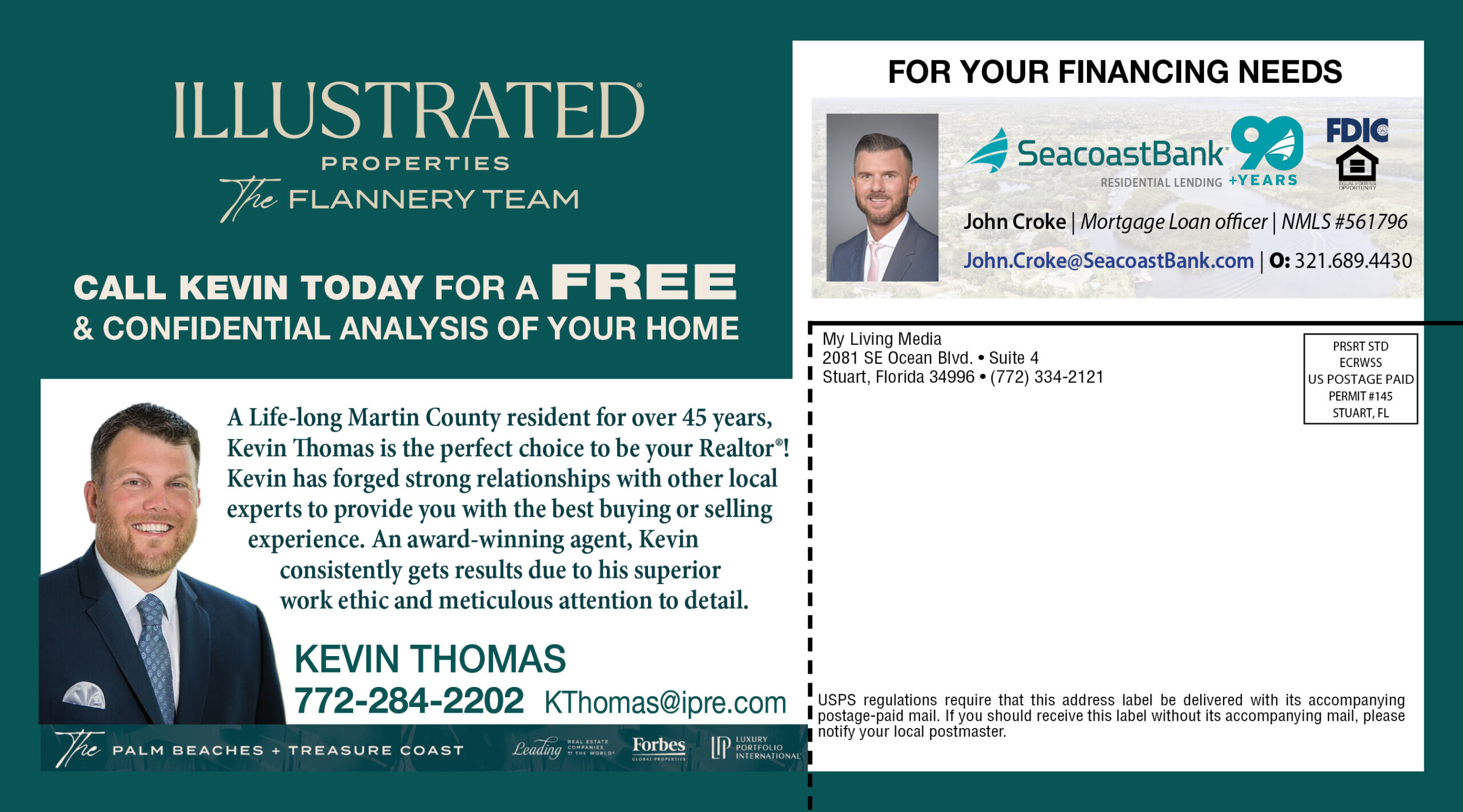 A Life-long Martin County resident for over 45 years, Kevin Thomas is the perfect choice to be your Realtor®! Kevin has forged strong relationships with other local experts to provide you with the best buying or selling experience. An award-winning agent, Kevin consistently gets results due to his superior work ethic and meticulous attention to detail.