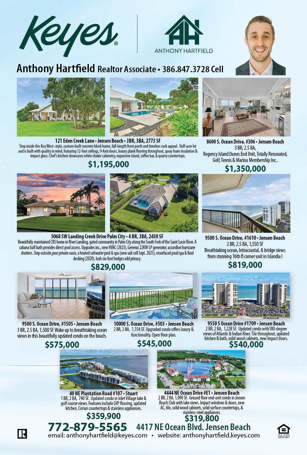As a highly motivated and resourceful realtor serving in Martin and St. Lucie County Florida, Anthony Hartfield will guide you in one of your most important financial decisions while making the experience rewarding, memorable, and stress-free. He has a passion for helping his clients buy and sell the properties of their dreams, whether it’s a first home, forever home, oceanfront, or waterfront condo. Understanding the many complexities of the local real estate market, Anthony utilizes strong communication skills to keep his clients informed and strengthen their position during transaction negotiations. Licensed since 2013, his years of experience have earned him the respect and recognition of clients and peers who appreciate his enthusiasm, professionalism, and sincere devotion to helping people translate their dreams into reality.